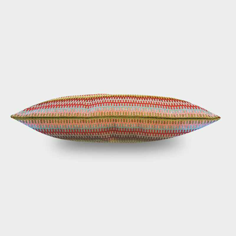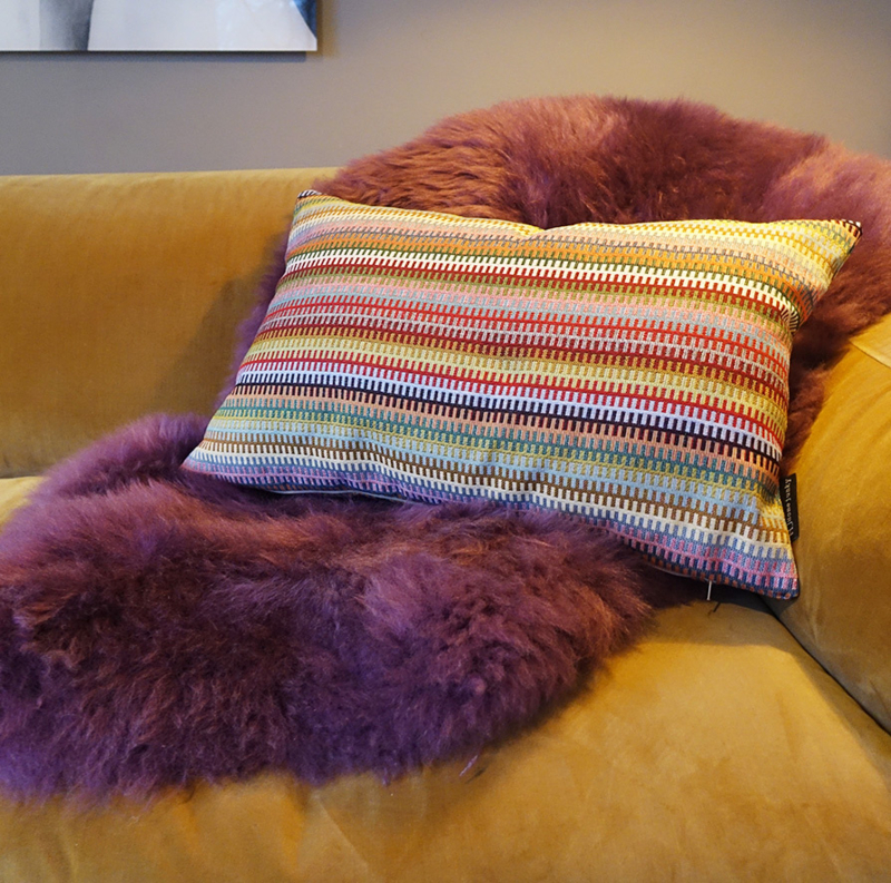 Artikelnummer: 313Geef je bank of bed een frisse uitstraling met dit moderne, rechthoekige kussen van jacquard geweven stof. Het multicolor streeppatroon en de hoogwaardige kwaliteit maken het een stijlvolle toevoeging aan je interieur. Inclusief vulling, makkelijk te combineren en een echte blikvanger!